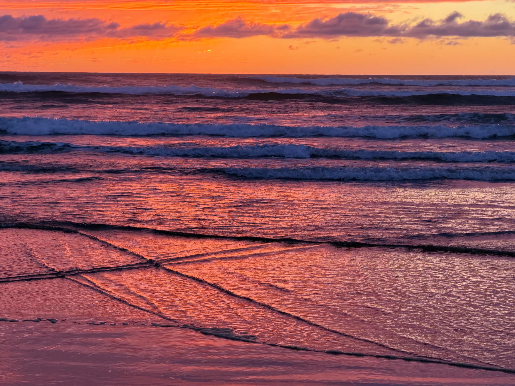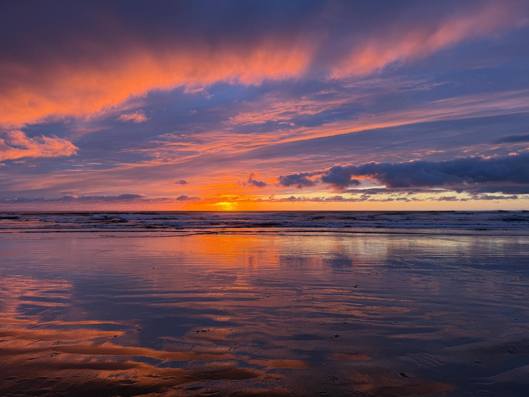 The color on the beach at the moment of sunset yesterday. I’m still glowing, just thinking about it. Cropped but no other editing, iPhone 17 Pro.