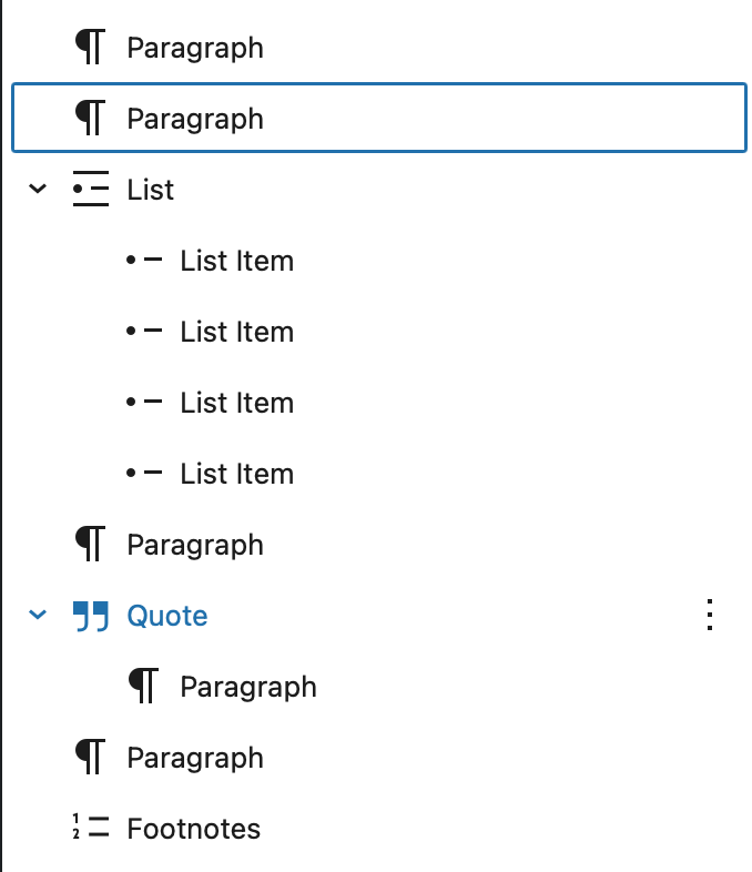 Maybe the list view could be seem as an outline, but you can’t type int it although you can add blocks with a mouse. I’d guess it could be an outline view of your post. Very handy for posts or pages with lots of nested blocks.
